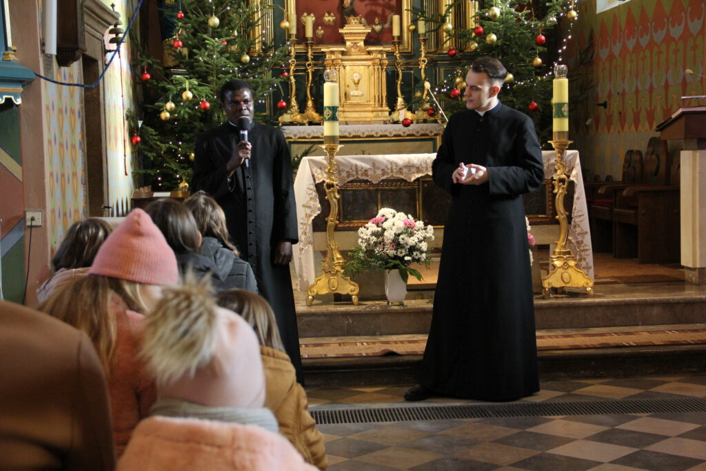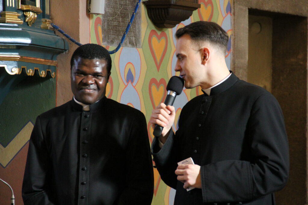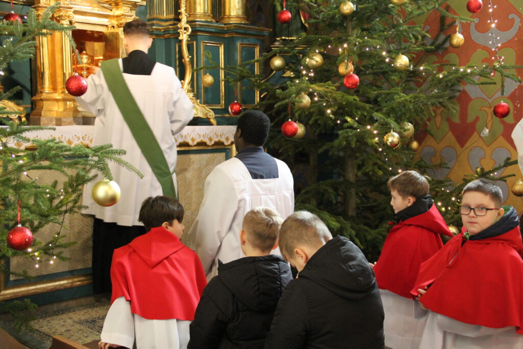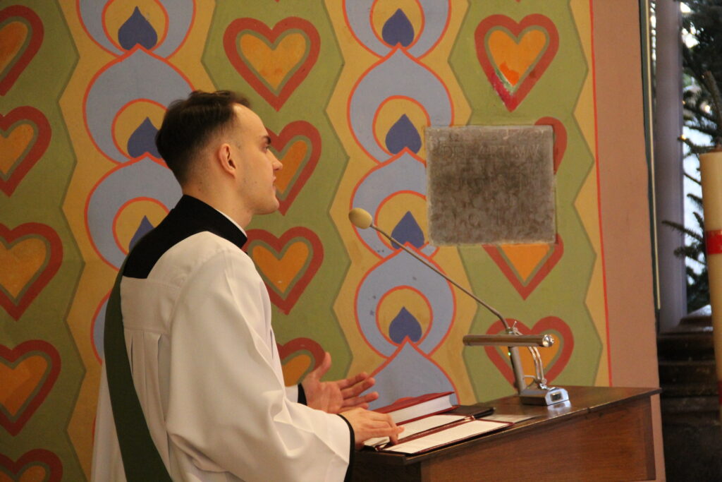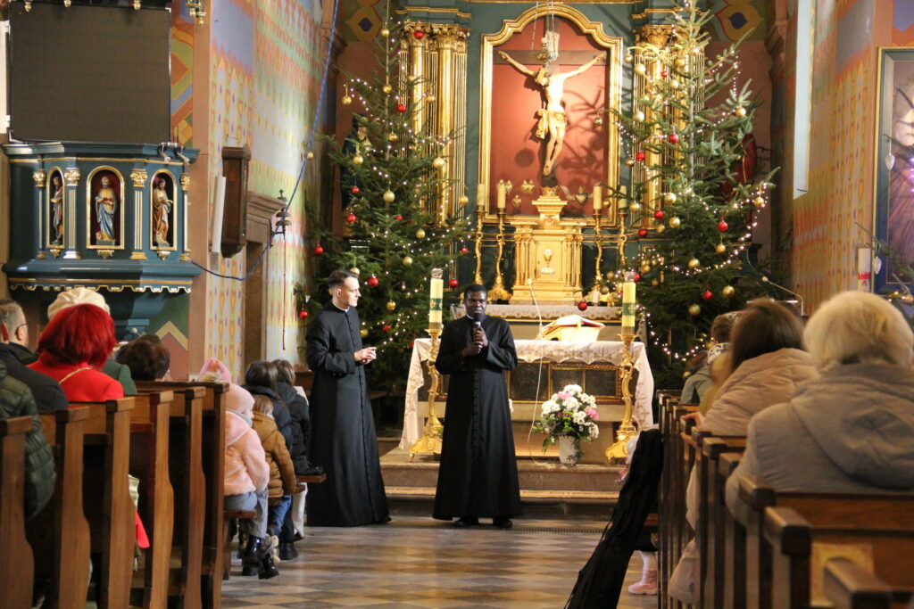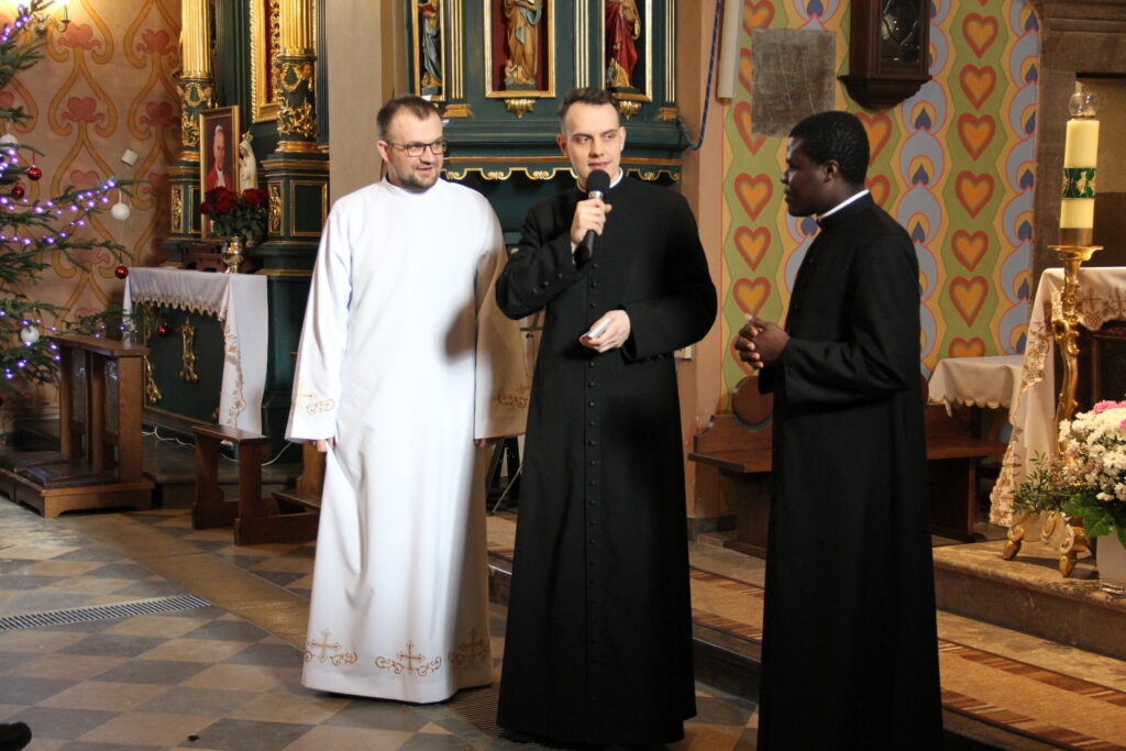 W niedzielę 26 stycznia 2025 r., przeżywaliśmy Dzień Seminaryjny. Do naszej parafii przybyli przedstawiciele WSD w Kielcach w osobach diakona Pawła CIEPLEWICZA (pochodzącego z parafii św. Bartłomieja w Szczekocinach) i kleryka IV roku Urlich’a MONOMANY (pochodzenie: archidiecezja BANGI – Republika Środkowoafrykańska). Diakon Paweł na wszystkich Mszach św. głosił homilię.