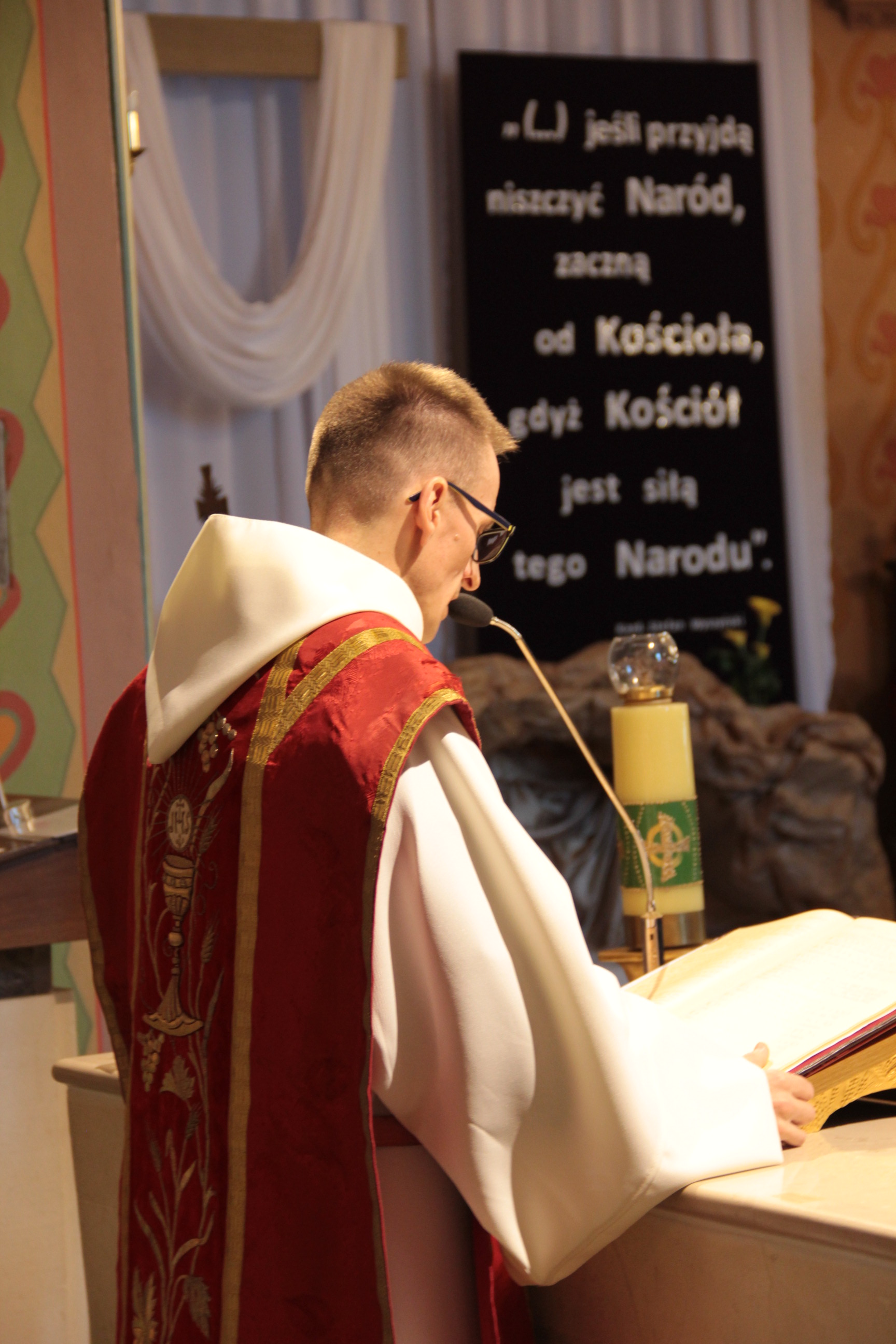Zabrali zatem Jezusa. A On sam, dźwigając krzyż, wyszedł na miejsce zwane Miejscem Czaszki, które po hebrajsku nazywa się Golgota. Tam Go ukrzyżowano, a z Nim dwóch innych, z jednej i drugiej strony, pośrodku zaś Jezusa. Wypisał też Piłat tytuł winy i kazał go umieścić na krzyżu. A było napisane: Jezus Nazarejczyk, Król żydowski. Napis ten czytało wielu Żydów, ponieważ miejsce, gdzie ukrzyżowano Jezusa, było blisko miasta. A było napisane w języku hebrajskim, łacińskim i greckim.