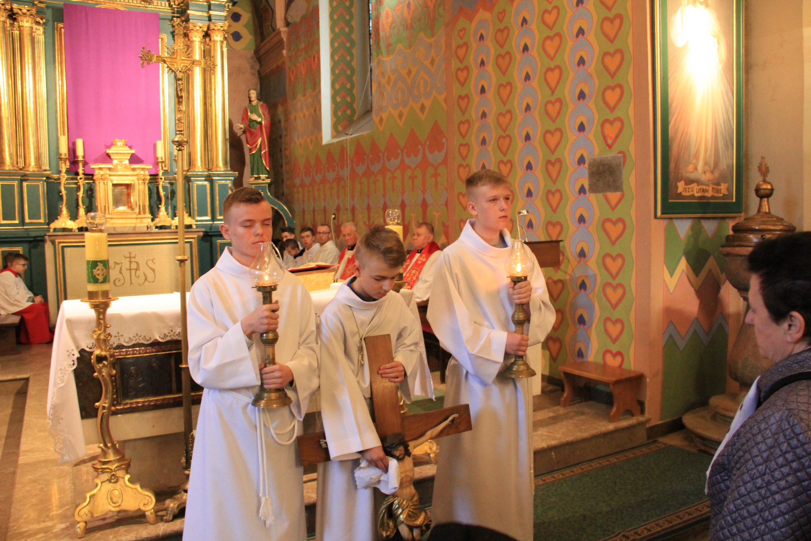 Zabrali zatem Jezusa. A On sam, dźwigając krzyż, wyszedł na miejsce zwane Miejscem Czaszki, które po hebrajsku nazywa się Golgota. Tam Go ukrzyżowano, a z Nim dwóch innych, z jednej i drugiej strony, pośrodku zaś Jezusa. Wypisał też Piłat tytuł winy i kazał go umieścić na krzyżu. A było napisane: Jezus Nazarejczyk, Król żydowski. Napis ten czytało wielu Żydów, ponieważ miejsce, gdzie ukrzyżowano Jezusa, było blisko miasta. A było napisane w języku hebrajskim, łacińskim i greckim.
